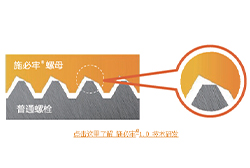 配合施必牢?螺母的螺紋結構特點,施必牢?螺栓的螺紋牙尖設計成與施必牢?螺母螺紋相互配合的一個30°楔形面,這個結構設計使得螺紋接觸由之前的線接觸變成帶狀面接觸,改善了接觸的穩(wěn)定性。從而使得夾緊力持續(xù)恒定。除了提供更優(yōu)越的防松性能外,還可防止滑牙,防治螺栓斷裂,防脫扣,抗過扭,是一種新型的高可靠螺栓副。